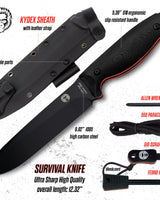 "The Fireline" Bushcraft Survival Knife with 1095 High Carbon Blade Giftset (Black and Orange)